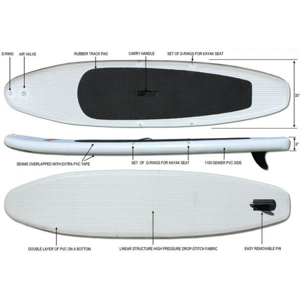 Funsor 11' Ultra-Light Inflatable SUP FWS-I330 have set of 2 D-rings on both sides of the board for the attachment of optional kayak seat or low profile beach chair, to use this paddle board as a sit-on-top kayak. Mount low profile beach chair with four adjustable straps, and cruise in a total comfort! The FWS-I330 SUP board has 1 large removable fin.